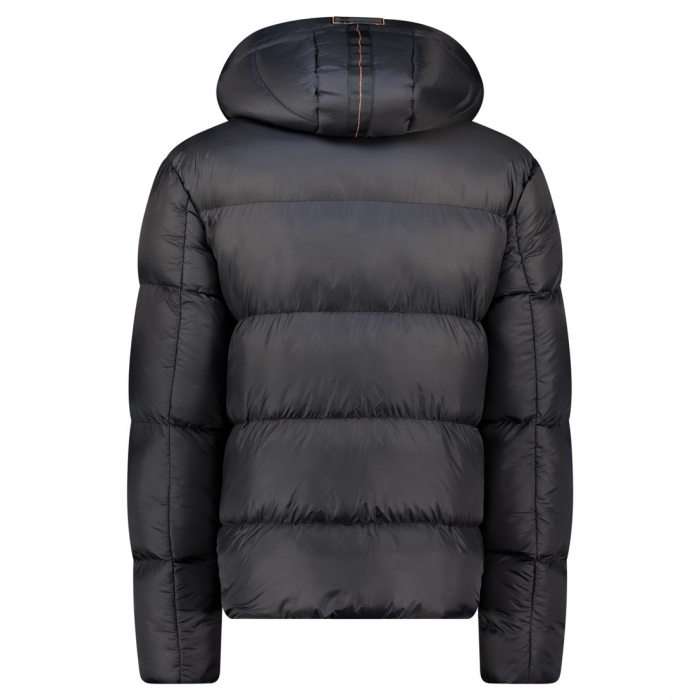 Parka s pevnou kapucí a nastavitelnými stahovacími šňůrkami. Pohodlný prošívaný materiál. Zapínání na zip a druk. Kapsy a nášivky.